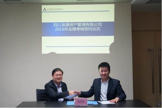 為了保證2016年度經(jīng)營目標(biāo)順利實現(xiàn),建立完善的績效管理體系和激勵約束機制。2016年4月19日,四川發(fā)展資產(chǎn)管理有限公司舉行了簽約儀式,由蒙宇總經(jīng)理與業(yè)務(wù)團隊分別簽署了《2016年度目標(biāo)責(zé)任書》。川發(fā)資管公司董事長楊朝暉及其他領(lǐng)導(dǎo)班子和全體員工參加了簽約儀式。
