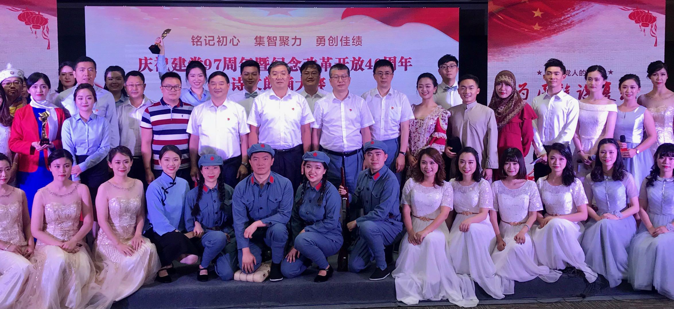 7月3日,四川金融控股集團有限公司舉辦“慶祝建黨97周年暨紀念改革開放40周年”詩文朗誦大賽,集團各部門及出資公司派隊參賽。比賽中,各代表隊以飽含深情的詩文朗誦向黨的97歲生日獻禮。經過激烈角逐和現場評分,四川發展資產管理有限公司(以下簡稱“川發資管”)詩歌朗誦節目《征程》獲99.3分,榮獲此次大賽第一名。
